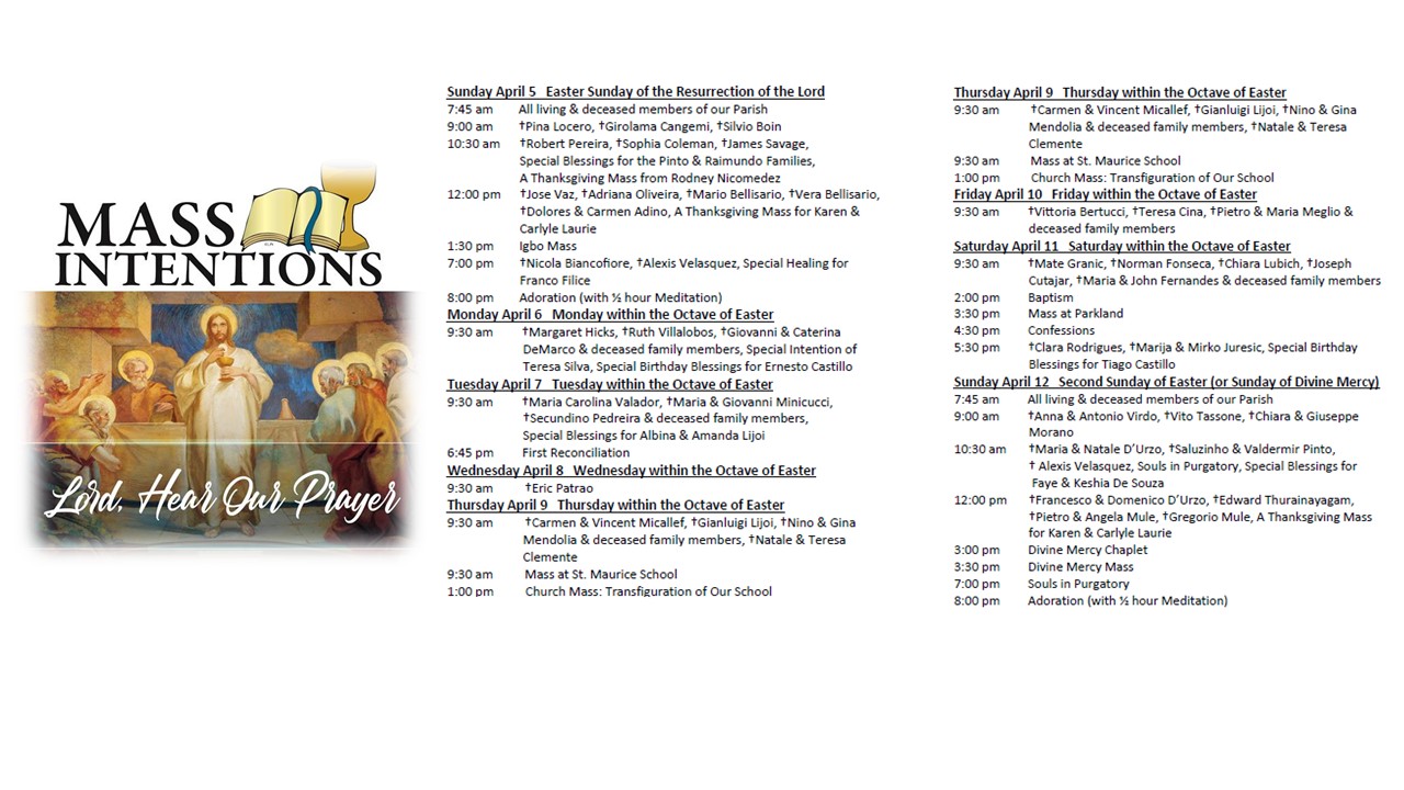 Mass intentions for the week of April 5, 2026 to April 12, 2026